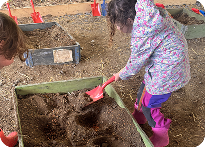 Help Brumble dig and sow in her planting patch
